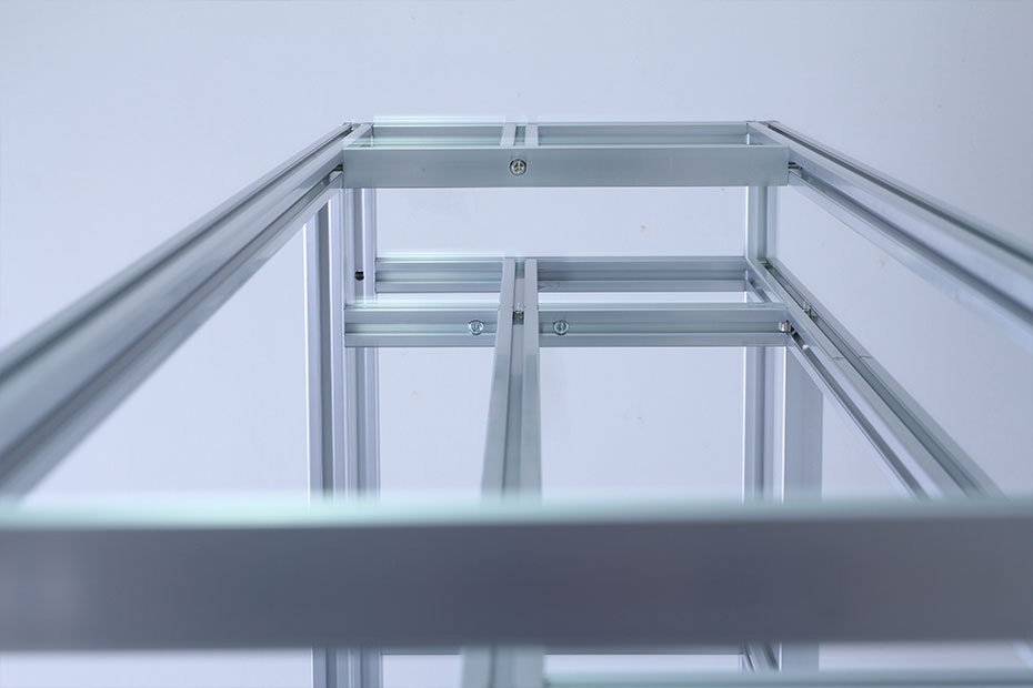 工業(yè)鋁型材框架,是由工業(yè)鋁型材和專用工業(yè)鋁型材配件連接所組成的萬(wàn)用系統(tǒng)框架的統(tǒng)稱。具有運(yùn)用范圍廣、施工方便、可擴(kuò)充性強(qiáng)、裝卸方便等特點(diǎn)。用戶可根據(jù)實(shí)際需要自由設(shè)計(jì)、安裝。